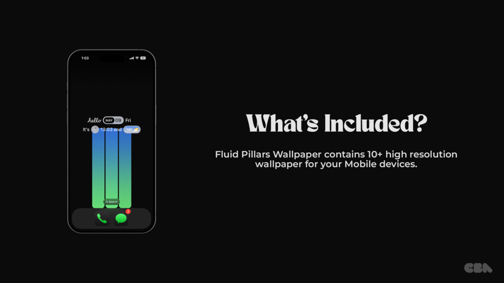 Fluid Pillars: A mobile wallpaper featuring three elegant vertical bars with a mesmerizing, smooth vibrant gradient flowing from deep green to serene blue.